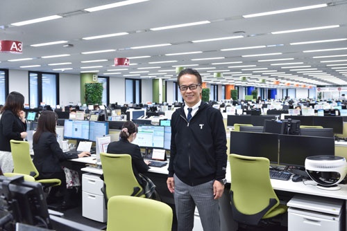 名古屋市中心部にある「コネクティッドセンター」。中央は運営するトヨタコネクティッド社長を務めるトヨタ副社長の友山茂樹氏(写真:上野英和、以下同じ)