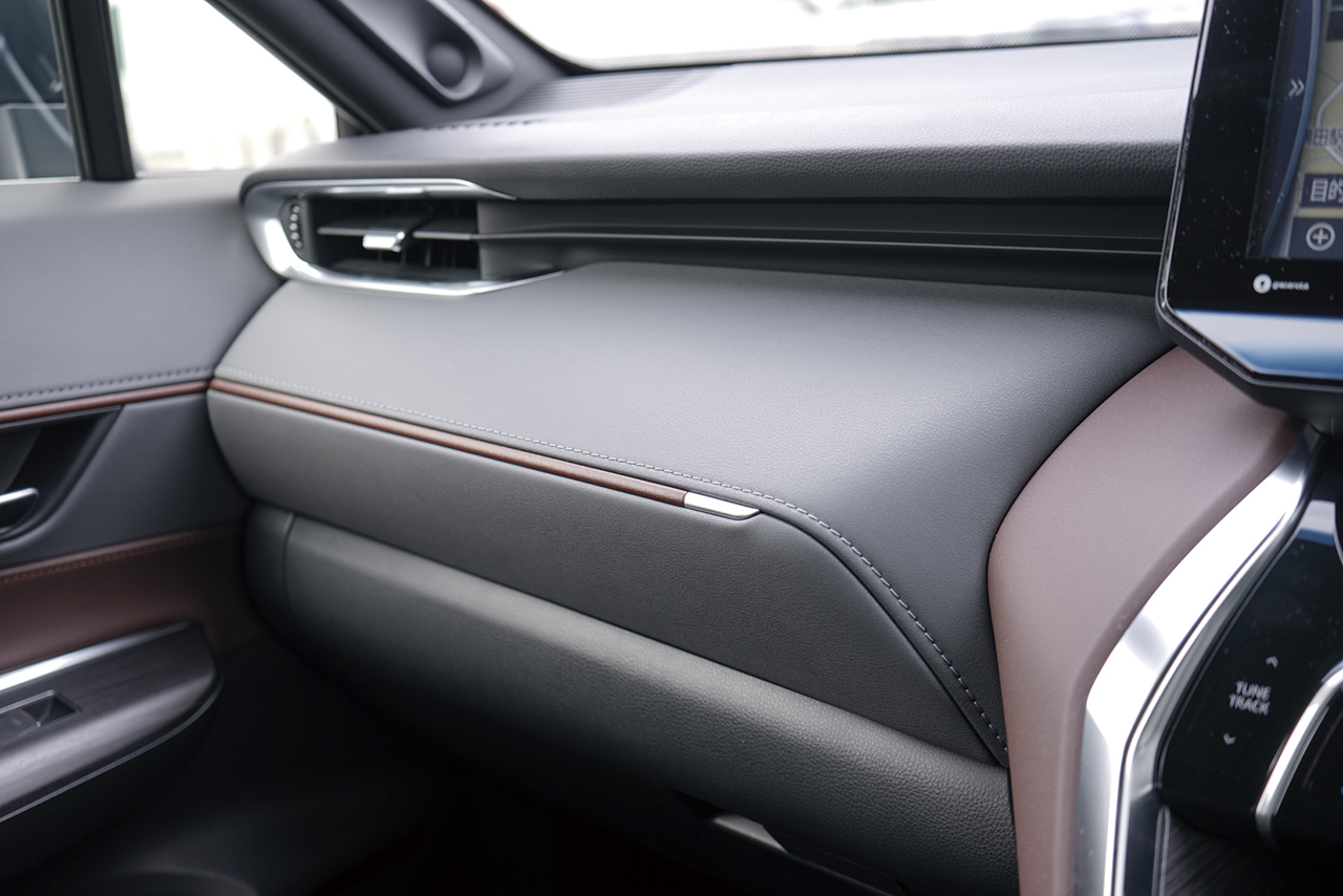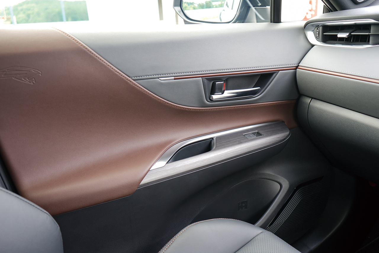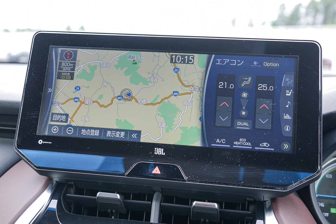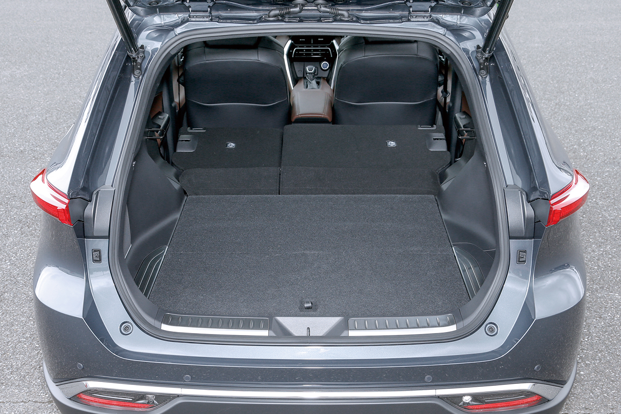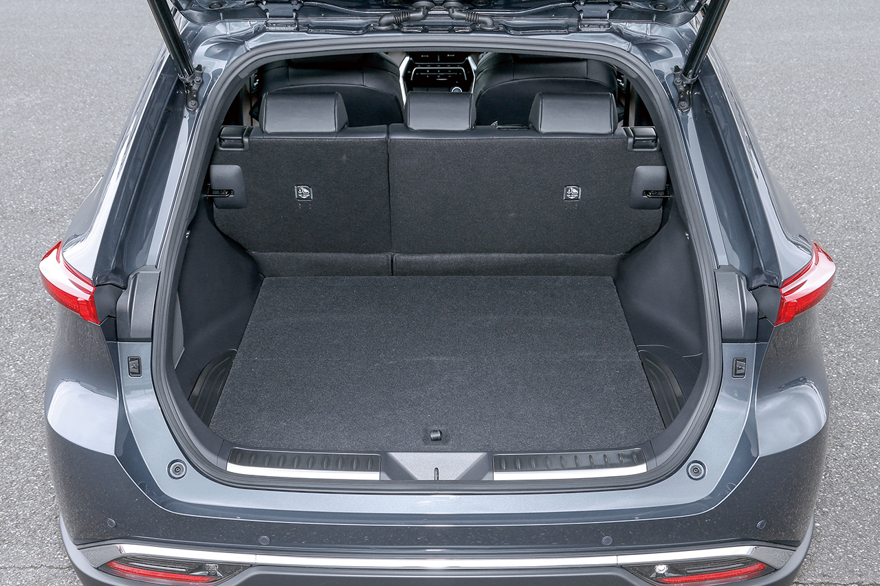 インパネセンターには大画面ディスプレイ(12・3インチ)、さらに先代でも好評だったタッチ式エアコンパネルが備わる。また質感の良さも見所で、触り心地にもこだわったレザー調加飾や、曲木(まげぎ)に着想したウッド調加飾、さらにパイピング加飾をバランス良く盛り込むことで、上質感をさりげなく高めている。また、スイッチ類が目立たないように配置されるなどの工夫が盛り込まれており、見た目のスマートさを実感できる空間に仕上げられている。ちなみにコックピット感覚を高める大型のセンターコンソールは「馬の鞍」をイメージしているそうだ。 新型の特徴の一つである静粛性も、吸遮音材・制振材の効果的な配置や高遮音ガラスを採用することで、9スピーカーのJBLプレミアムサウンドシステムがより活きる室内空間に仕上がっていることも見逃せない美点だ。 新型はエクステリアデザイン優先と思われがちだが、トヨタ車初採用となる調光ガラス付きのパノラマルーフや前後方録画機能付デジタルインナーミラーなど先進装備が充実するほか、居住性や荷室のスペースに関しても、ハリアーを購入するユーザーの期待を裏切らない内容が盛り込まれている。