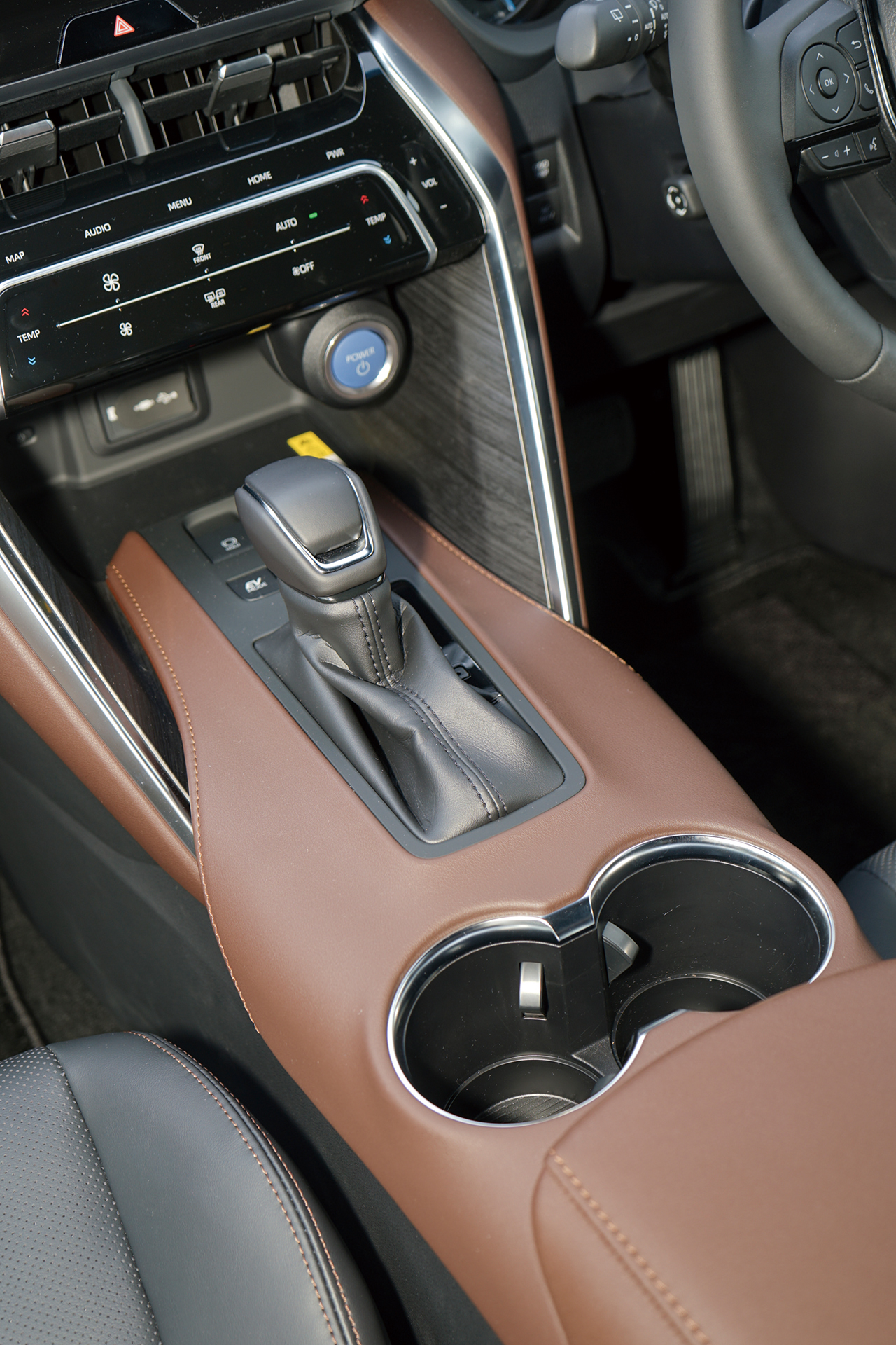 ダッシュボード中央にメインモニターを配する、近年のトヨタ車らしいレイアウトを採用。光沢系の加飾は控えめに、大人びた雰囲気を醸し出す洗練されたキャビン空間は新型の特徴の一つ。