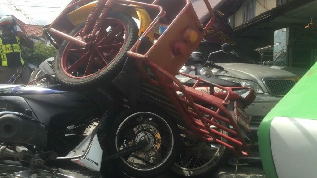 ‘ผู้พิพากษาศาลสมทบฯ’ ขับรถเก๋งพุ่งชนรถกระบะ-สามล้อพ่วงข้าง-รถจักรยานยนต์ 8 คันรวด โชคดีไร้ผู้บาดเจ็บ